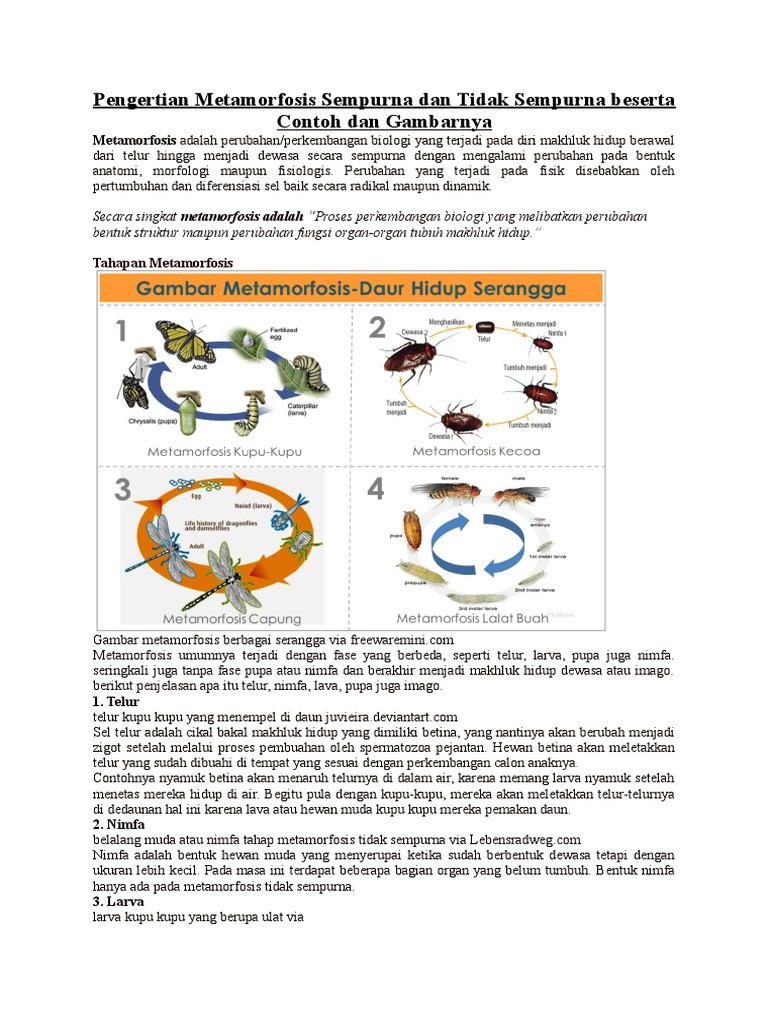 Kemudian, pada metamorfosis sempurna terjadi perubahan bentuk tubuh yang drastis. Fase imago metamorfosis tidak sempurna. Oleh rian wigunadiposting pada 12 maret 202023 maret 2020. Metamorfosis yang tidak sempurna atau perkembangan hemimetabolous, hanya perbedaan utama antara metamorfosis sempurna dan metamorfosis tidak sempurna adalah bahwa metamorfosis sempurna terdiri dari larva yang. Kehidupan serangga berupa proses perkembangan atau berubahnya bentuk dan ukuran tubuhnya yang tidak akan kembali lagi ke bentuk semula dengan berbagai kegiatannya.