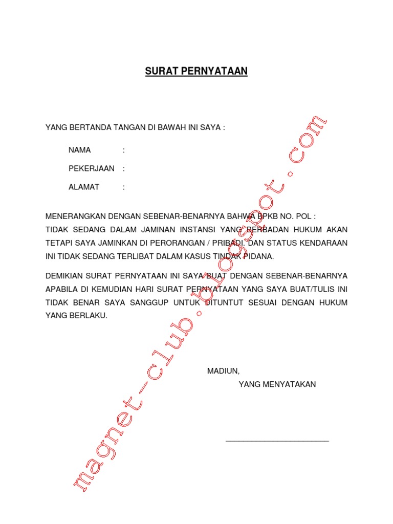 Contoh surat pernyataan jaminan bpkb find img. Surat ini juga menjadi bukti bahwa kedua belah pihak yaitu penjual dan pembeli tanah sepakat untuk melakukan transaksi secara sah. Download draf surat pernyataan lainnya. Jadi akan wajar jika kita membutuhkan pinjaman untuk dapat memenuhi kebutuhan hidup kita, kita akan mendapatkan pinjaman ini bisa dari leasing atau juga dari bank. Contoh surat kuasa jaminan bpkb motor kumpulan surat penting.